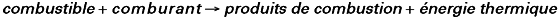 La combustion est aujourd’hui un des principaux moyens de conversion de l’énergie. Elle est utilisée dans de nombreux systèmes pratiques aussi bien pour produire de l’énergie thermique (chaudières ou fours domestiques et industriels) ou de l’électricité (centrales thermiques), que pour le transport (moteurs automobiles et aéronautiques, moteurs fusée, …) ou encore la destruction de déchets (incinérateurs). La combustion peut être caractérisée comme une (ou des) réaction(s) irréversible(s) fortement exothermique(s) entre un combustible (ou réducteur) et un comburant (ou oxydant) selon le schéma global :