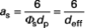 Dans le cas de particules non sphériques, on définit d p comme étant le diamètre d'une sphère équivalente, ayant le même volume que celui de la particule considérée. On introduit alors un facteur de sphéricité Φ s, défini comme le rapport entre la surface d'une sphère de même volume que la particule, à sa surface extérieure vraie S p