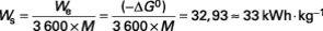 Le principal intérêt du combustible H2 est que la densité d‘énergie spécifique théorique W s associée à la réaction (2), rapportée à 1 kg d’hydrogène et exprimée en kWh · kg–1, est très élevée, soit, à l’état standard :