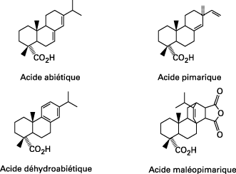 Chimiquement, les résines naturelles sont des mélanges complexes de plusieurs classes de composés dont les principaux sont donnés ci-dessous.