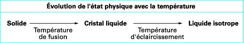 Les matériaux susceptibles de f ormer des cristaux liquides peuvent aussi, suivant la température, prendre la forme solide ou liquide (cf. encadré).