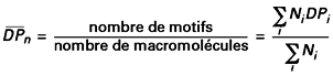 , égal au rapport du nombre de motifs élémentaires au nombre total de macromolécules de toutes tailles, contenues dans cet échantillon. S’il existe i espèces de macromolécules, chacune est caractérisée par :