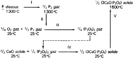 Quelle est la chaleur dégagée par l’oxydation, par l’oxygène pur, de 0,1 % de phosphore dissous dans une fonte liquide et par la neutralisation du P2O5 formé pour obtenir le composé 3CaO.P2O5 à 1 500 oC ?