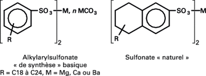 Ces additifs sont des organosels de calcium ou de magnésium. Les dérivés du baryum, en particulier, les alkylphosphonates de baryum, encore utilisés dans d’anciennes formules, sont en voie de disparition pour des raisons de toxicité, de protection de l’environnement et de stabilité thermique médiocre.