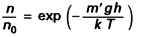 D’après la loi de distribution des vitesses de Maxwell-Boltzmann , la densité des molécules à différentes hauteurs est donnée par :