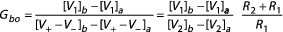 Le dispositif de mesure de la figure est dédié à la mesure du gain en boucle ouverte de AOP. En effet, si le gain de l'amplificateur de mesure (Ampli) est supérieur à quelques 105 les entrées « + » et « – » sont au même potentiel (à quelques μV près). Alors :