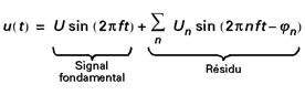 La valeur instantanée d’un signal altéré par des composantes à fréquences harmoniques du fondamental s’écrit sous la forme suivante :