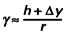 la différence de position γ entre le point de contact « idéal » et le point de contact réel sur la cible, compte tenu du rayon de courbure r de la cible au voisinage du point de mesure : r sin γ » (h + Δy) » r γ.