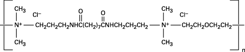 Nom chimique : poly[oxy-1,2-éthanediyl(diméthyliminio)-1,3- propanediylimino(1,9-dioxo-1,9-nonanediyl)imino-1,3-propanediyl(diméthyliminio)-1,2-éthanediyl dichlorure] (9Cl)