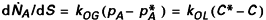 Considérons une phase gazeuse et une phase liquide en contact et soit A un constituant de la phase gazeuse soluble dans le liquide ; le flux moléculaire de transfert est :