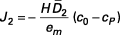 En osmose inverse, on utilise couramment un modèle diffusionnel pour décrire le transfert à travers la membrane (§ 4.2.2 de [J 2 789]). c0 (kg · m–3) étant la concentration du soluté dans la solution qui arrive sur la membrane et cP (kg · m–3) la concentration du soluté dans le perméat qui a traversé la membrane, l'équation (80) de [J 2 789] peut s'écrire :