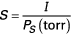 Elle se calcule à partir du courant électrique d'intensité I produit par le flux ionique sur un collecteur et la pression partielle PS du gaz nécessaire pour cette mesure :