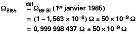 Représentation matérielle de l’ohm au BIPM, symbolisée Ω69-BI, valeur au 1er janvier 1985 (ΩBI85) :
