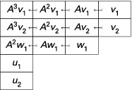 On commence par choisir des vecteurs v 1, …, vp dans E qui relèvent une base du quotient E/Ker A m – 1, c’est-à-dire