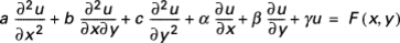 où a, b, c, α, β, γ désignent six nombres réels donnés (a, b, c étant non tous nuls), F une fonction continue de deux variables réelles définie sur un ouvert U du plan et u une fonction inconnue, supposée de classe C 2.