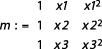 >m:=Matrix (3, 3, (i, j) ->x| |i^(j–1)) ;