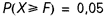 Cela revient à chercher P(X > F) = 0,05. Il suffit de se placer à l’intersection de la ligne degré de liberté du dénominateur égale à 2 et de la colonne degré de liberté du numérateur égale à 3 dans le tableau 4 et on obtient F = 19,164.