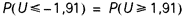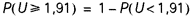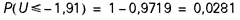 On décompose 1,91 en 1,9 et 0,01, on se place à l’intersection de la ligne u = 1,9 et la colonne u = 0,01 et on lit la probabilité associée 0,9719.