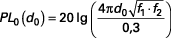L'affaiblissement PL0(d0) en dB est généralement modélisé par la relation suivante :