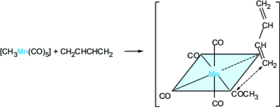 The carbon-carbon interaction can continue between the acetyl group and the butadiene end, and after migration...
