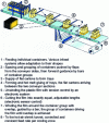 The organization and installation of a packaging chain includes a series of stages. This article is dedicated to end-of-line machines in the packaging chain. In particular, the case of glass or plastic bottles, various vials as well as that of cardboard cases and boxes/crates (supply, transportation, cartoners, shrink-wrappers, product collating systems, palletizers, secondary packaging, etc.) are dealt with. A paragraph is also dedicated to the management of packaging lines and another to end-of-line conveyors. The packaging lines can be automated or semi-automated; in the last case certain stages are handmade. This article is illustrated by general cases and special systems.