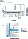 The pressure sensor is generally a piezoelectric sensor. It can be placed on the ejector plate. In this case, it measures the injection and holding pressure at the point where the ejector emerges from the cavity, as well as the ejection force. The design of the sensor must enable it to withstand the shocks and vibrations associated with its position in the ejector plate.