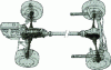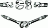 The cardan joint, described in the specialized article of this treatise, is used either as a unit if the break angle is low, or much more commonly as a pair, i.e. in a two-joint transmission with a symmetrical configuration in terms of both break angle and wedge angle, so that the driven shaft has, as far as possible, an angular speed constantly equal to that of the driving shaft.