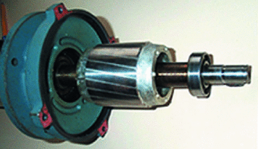 Almost all the industrial motors we're talking about use a cast aluminum cage rotor. Wound versions are reserved for a few specific applications (such as the replacement of old machines, or hyper or hyposynchronous cascade applications). In some cases, copper is injected in place of aluminum, often in the case of severe corrosion (submersible pumps), or even bronze for torque motors (resistant cage, highly thermally stressed). Figure 8 shows a complete rotor.