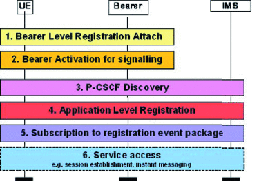 Figure 3 illustrates the useful procedures for accessing IMS services in the order in which they must be executed to enable, for example, terminal/user participation in a session (call received or call sent).