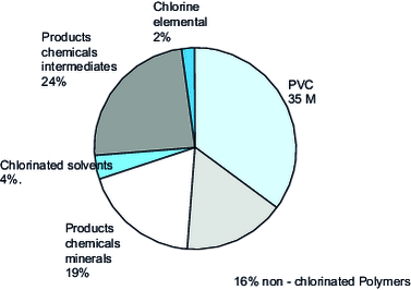 It is difficult to draw up a complete inventory of the uses and applications of chlorine and its derivatives, given the large number of chlorinated products listed and, above all, the wide variety of applications in many sectors of the economy. Nevertheless, figure 23 gives an overview of the distribution of chlorine uses in Europe.