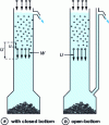 between the fluid flow rate and the characteristic properties of the mobile porous medium and of the fluids to maintain this porous medium in optimum operating conditions for carrying out the process and producing the desired product (sedimentation, fluidization);