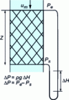 between the head losses required to ensure a known, optimum fluid flow rate, taking into account the characteristic properties of the fixed porous medium (reactors, filtration).