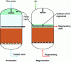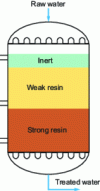 Ion exchange resins are used in filter vessels. Once exhausted, they must be regenerated. This article reviews various ion exchange column types, their combination, and how they are used and regenerated, with several examples of application in water treatment.