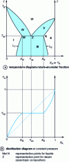 Distillation operations are carried out in vertical columns fitted with trays through which the phases circulate in counter-current, by gravity (figure 6 ). Feed I is introduced at a point in the column (see § 5.4.1 ) whose position has a decisive influence on the operation. The column thus comprises two sections:...