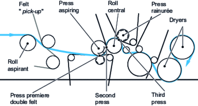 Paper manufacturing also consumes water at the various stages of pulp preparation, additives and on the paper machine. Some of this water is recycled (see wet-end circuit), while the surplus is sent to the wastewater treatment plant. Finally, it generates waste (sludge,...