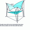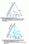 In the case of binary alloys, a single composition variable was sufficient to define the chemical composition of the alloy. With this variable on the abscissa and the temperature variable on the ordinate, a flat graphical representation of the alloy equilibrium could be obtained. In multicomponent systems, the number of composition variables is greater than one. Ternary phase diagrams thus occupy a three-dimensional space; from quaternary systems onwards, diagrams occupy hyperspaces with more than three dimensions. Ternary systems are thus the most complex that can yet be represented in their entirety in space. This three-dimensional representation is of didactic interest for understanding the qualitative evolution of alloys, e.g. solidification paths, but it soon reaches its limits, as it is never quantitative and, what's more, some readers find it difficult to "read in space". In the first half of the 20th century, these spatial representations were used extensively, and some specialists were masters of this now somewhat esoteric graphic art. Today, the tendency is to abandon cavalier perspectives and block out a sufficient number of variables (or impose specific conditions), in order to reduce ourselves to flat representations in all cases. This means giving up the global vision of the system, which in any case would be impossible beyond three elements. The ability to model multiconstituent equilibria using appropriate thermodynamic software makes it possible to work in hyperspaces containing any number of variables, and to extract certain planar representations.