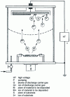 The simplest experimental set-up is shown in figure 1 . The material to be deposited is evaporated in the N pod, which is heated by the Joule effect. The substrates S are placed under the cathode electrode C, which is negatively polarized in relation to the rest of the grounded enclosure. The introduction of a gas raises the pressure in the chamber and initiates an electrical discharge between the substrate-carrying cathode and the rest of the chamber. For metal deposition, the gas used is argon. If a composite material is to be deposited, the gas(es) corresponding to the material is introduced.