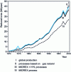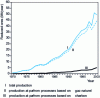 Secondly, we note the predominant role of natural gas reduction processes, compared with coal reduction (although there are signs of a shift in this respect) and consequently, as mentioned above, the development of direct reduction in countries where natural gas is abundant and cheap, i.e. above all in developing countries.