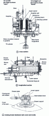 In this process, the entire ladle is placed in a vessel under compressed air pressure. The liquid steel is then forced through a refractory tube into a slab-shaped graphite mold above (figure 1 ).
