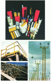 By combining thermosetting matrices (polyester, epoxy) with different fibers (glass, carbon) using pultrusion processing techniques, it is possible to produce composite reinforcements (bars of different cross-sections) for the reinforcement of concrete or other construction materials (figure 21 ).