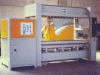 The glued veneers are placed in an electrically or high-frequency heated mold. The mold is clamped in a platen press. As the mold is closed, the veneers deform and take on the shape of the mold. The pressure used is important because, with wood, variations in thickness and structural defects must be compensated for by plastic deformation. Only hydraulic presses can achieve the necessary pressures. The pressing time must be adapted to allow the glue to harden at the heart of the plywood. To save time, parts are demolded before they have fully hardened. The parts must be stabilized before the next cutting and drilling operations.
