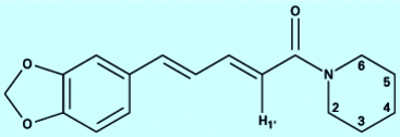 The 2D techniques COSY, HMQC then HMBC and NOESY identify molecule 12 as piperine. The tricky part is interpreting the nitrogen ring signals. The 1 H spectrum...