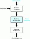 When used for analytical purposes (separation, identification and/or quantification of all or part of the constituents of a more or less complex mixture), development proceeds by elution: the phase system is chosen so that the species of interest have a greater affinity for the stationary phase than the constituents of the mobile phase, and only a very small quantity of the sample is injected; the different species migrate through the column (or plate) at different speeds, under the influence of the mobile phase acting by mass action, and the result, after travelling a sufficient length, is a complete separation, under well-chosen conditions, of the solute bands. Each species appears in the chromatographic column effluent in the form of a concentration...