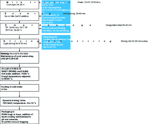 In figure 1 , the milk, whose fat content may be between 3.60 and 4.20%, can be homogenized before being pasteurized at a temperature of 72-75°C for 15 to 30 seconds. It is then cooled to a ripening and coagulation temperature of between 34 and 39°C.