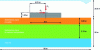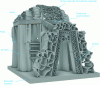 3D-printed structure made of reinforced concrete, completely or partially encased in a wall of variable width.